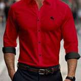 Manfinity homme camisa de manga larga para hombre con bordado, logo de caballo rojo bordado