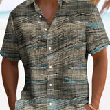 Camisa de manga corta con botones y estampado 3d digital de arte abstracto con textura geometrica vintage para hombres de talla grande