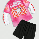 Romwe men conjunto de 2 piezas de sudadera informal y shorts con estampado numerico para hombres