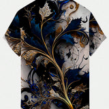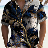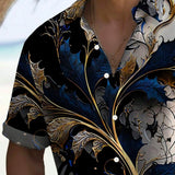 Camisa de manga corta con botones y estampado floral 3d vintage para hombres de talla grande