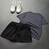 Manfinity sport corelite conjunto de 2 piezas de top de manga corta casual y pantalones cortos para mujer, moda minimalista para uso diario