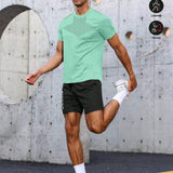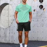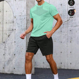 Manfinity sport corelite conjunto deportivo de camiseta de manga corta y pantalones cortos con estampado geometrico para hombres