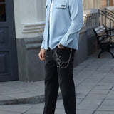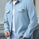 Manfinity hypemode camisa de manga larga casual de solapa unica con estampado de letras para hombres