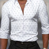 Camisa de manga corta con estampado todo sobre para hombre, camisa estampada de ajuste slim con botones, ropa de trabajo