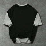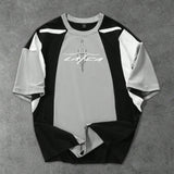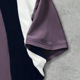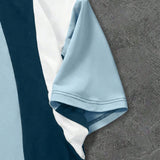 Manfinity streetrush camiseta de manga corta casual para hombres con bloqueo de color contrastante y estampado de letras, suelta con cuello redondo, manga corta con parche, regalo casual diario, uso casual diario para vacaciones y todo el ano