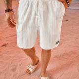 Easevo short holgado de punto blanco de textura ondulada para hombre de talla grande