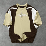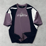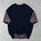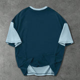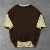 Manfinity streetrush camiseta de manga corta casual para hombre con bloque de color contrastante y estampado de letras, cuello redondo holgado, patchwork de manga corta, regalo casual diario para vacaciones, uso diario casual en todas las estaciones