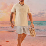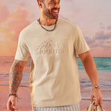 Cozemod camiseta de punto de manga corta con cuello redondo y estampado de letra en relieve para hombres de talla grande