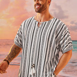 Cozemod camiseta de hombre talla grande, suelta y casual, con rayas y manga corta