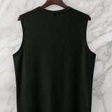 Manfinity homme camiseta sin mangas casual de talla grande para hombre, verano 2025, top deportivo minimalista con estampado de letras, color negro clasico que queda bien con todos los tonos de piel