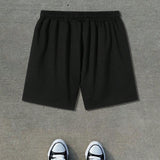 Pantalones cortos deportivos casuales negros de hombre con impresion numerica y de letras