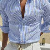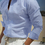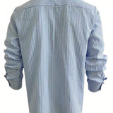 Camisa de manga larga con botones y cuello casual, a rayas, de estilo simple y de moda para hombres de talla grande. atuendo comodo para primavera y otono, prenda casual esencial para ir al trabajo, de estilo minimalista