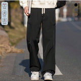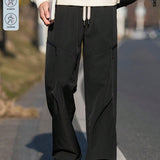 Pantalones deportivos casuales para hombre, con cintura con cordon, corte holgado, con bolsillos, adecuados para todas las estaciones, de tela no elastica, de longitud regular, de unicolor, ideales para actividades al aire libre