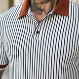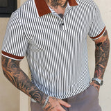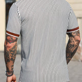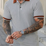 Manfinity bizformal camisa tipo polo de hombre manfinity bizformal de unicolor, diseno de parches, estilo casual con rayas y cuello de canale de manga corta