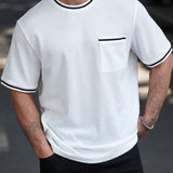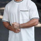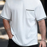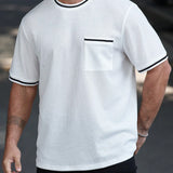 Homme camiseta de manga corta con ribete de contraste, estilo minimalista casual para hombres talla grande