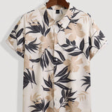 Manfinity resortease camisa casual de manga corta con estampado de plantas para uso diario, tallas grandes para hombres