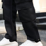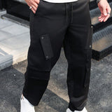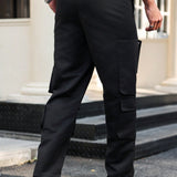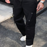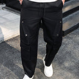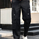Manfinity legnd pantalones casuales de talla grande para hombre de un solo color con bolsillos de carga y cintura con cordon