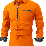 1 pieza camisa casual de manga larga con bolsillo y sin botones de unicolor para hombre