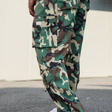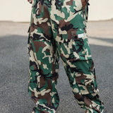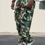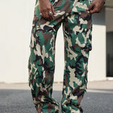 Manfinity legnd pantalones rectos casuales de talla grande para hombres con bolsillos y amarres frontales en camuflaje