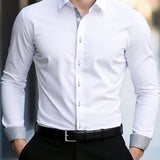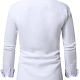 Manfinity mode camisa casual de manga larga con diseno de patchwork, cuello de solapa y botones, patron de cuadros, adecuada para trabajo, negocios, papa e hijo. camisa de manga larga con botones lisos para hombre.