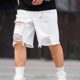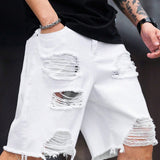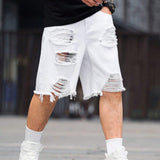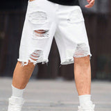 Manfinity homme pantalones cortos jeans de pierna ancha con bolsillo desgastado y dobladillo con flecos para hombres de talla grande