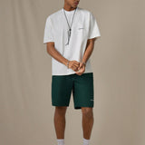 Manfinity urbanchill conjunto de 2 piezas compuesto por camiseta suelta con estampado sencillo de contraste blanco y verde, y shorts, para hombre, estilo casual