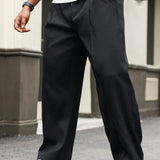 Manfinity homme pantalones rectos casuales de unicolor con bolsillos para hombres de talla grande