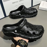 1 par de zuecos livianos y comodos para hombres, con diseno calado antideslizante, sandalias de malla de verano para hombres, para uso casual al aire libre, con suela gruesa y antideslizante, pantuflas de playa