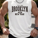 Manfinity homme chaleco deportivo sin mangas para hombres de talla grande con hombros anchos, 2025 nuevo, estilo minimalista, blanco con estampado de letras negras, camiseta de tirantes casual y retro de estilo estadounidense