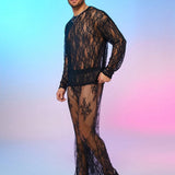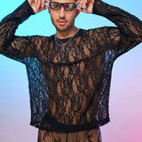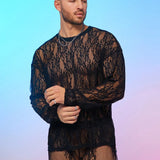 Fevercity camiseta de manga larga con cuello redondo, de corte holgado, en tejido de poliester blended de punto jacquard con malla para hombre