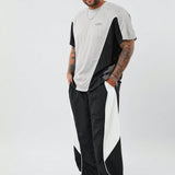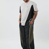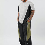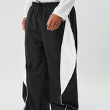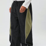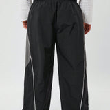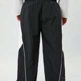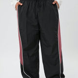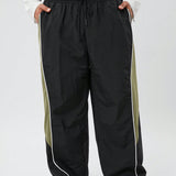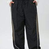 Manfinity nxtstreet pantalones rectos de talla grande para hombres, con cintura con cordon y parche tejido casual