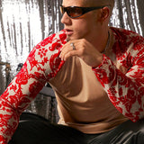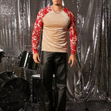 Manfinity aftrdrk camiseta casual de hombre con estampado de patchwork floral de bloques de color