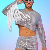 Fevercity conjunto de camiseta de manga corta con flecos y parches de seda de hielo para hombre