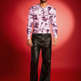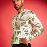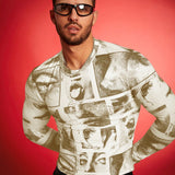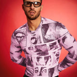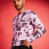 Fevercity camiseta de manga larga de cuello redondo ajustada con estampado digital para hombre