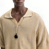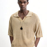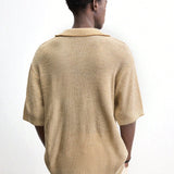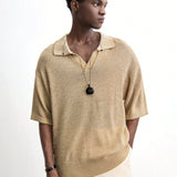Maija saco suelto de punto casual de manga corta con cuello vuelto para hombre