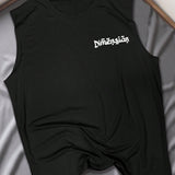 Manfinity homme nuevo chaleco sin mangas de cuello redondo negro de corte amplio para hombre talla grande del verano de 2025, top de tirantes de ajuste holgado con espalda con estampado en estilo vintage americano