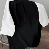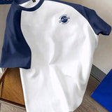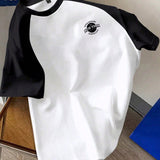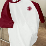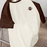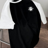 Manfinity joysei camiseta de manga raglan con bloqueo de colores en contraste y estampado de letras para hombres