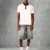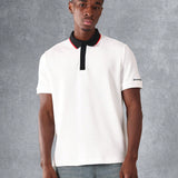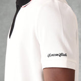Sumwon camisa polo de manga corta con cuello de contraste texturizado, ajuste delgado, con pequeno diseno bordado en la manga