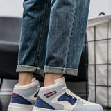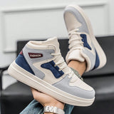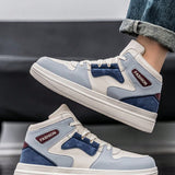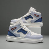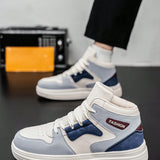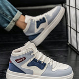 Zapatos deportivos casuales de exterior comodos de color contrastante y de corte alto para hombres, con suela plana clasica de cordones, suela gruesa y antideslizante, que absorbe los golpes y es versatil para caminar