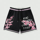 Romwe pantalones cortos deportivos de baloncesto con estampado floral para hombres