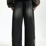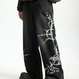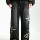 Inflation jeans vaqueros casuales simples de hombre con bolsillo con boton delantero y estampado