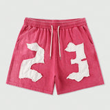 Romwe pantalones cortos para hombre con parche bordado con el numero 23, lavados y desgastados