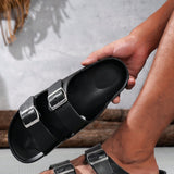 Sandalias slip-on para hombres con hebilla metalica plana de color liso