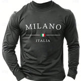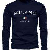 Camiseta casual de manga larga y cuello redondo con estampado de eslogan para hombre, otono