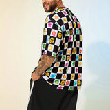 Cozemod camiseta de manga corta con cuello redondo de hombre talla grande, de punto holgado, con estampado de tablero de ajedrez negro y blanco