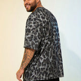 Cozemod camiseta de punto holgada con estampado de leopardo para hombre de talla grande