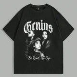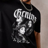 Cozemod camiseta de punto de manga corta con estampado grafico, corte holgado, para hombres de talla grande, color negro