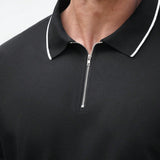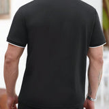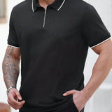 Manfinity homme camisa polo casual de manga corta con cierre de cremallera y parche de unicolor para hombres de talla grande