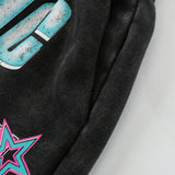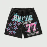 Romwe pantalones cortos casuales de hombre con estampado retro lavado, estilo callejero