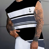 Top de tirantes estampado de bloques de color para hombre, camiseta casual de vacaciones, adecuada para salidas y uso en la calle